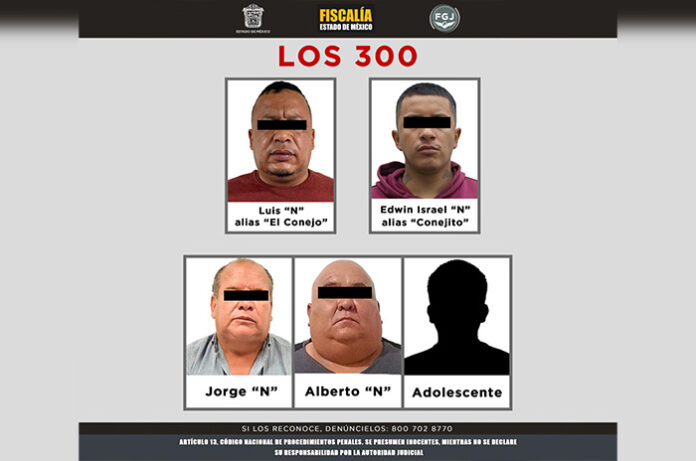 La Fiscalía General de Justicia del Estado de México (FGJEM) obtuvo vinculación a proceso por el delito de extorsión en contra Edwin Israel “N”, alias “Conejito”, quien es hijo de Luis “N” alias “El Conejo”, identificado como líder de “Los 300” y/o “Unión 300”, agrupación social relacionada con la comisión de hechos delictivos de despojo, extorsión en agravio de empresarios y agremiados de rutas de transporte público, homicidio y robo con violencia entre otros, principalmente en municipios de Ecatepec, Coacalco, Nezahualcóyotl, Tecámac, Zumpango, así como en la Ciudad de México.