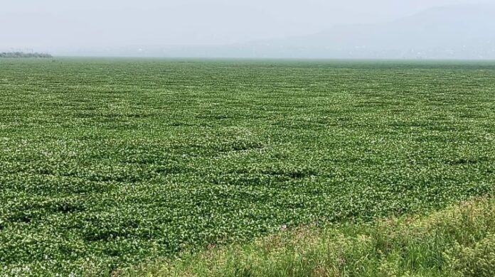 El lirio acuático, conocido entre los pobladores como cucharilla, ya cubre entre mil 230 y mil 245 hectáreas de las mil 853 que conforman el espejo de agua de la Laguna de Zumpango, según la medición más reciente.