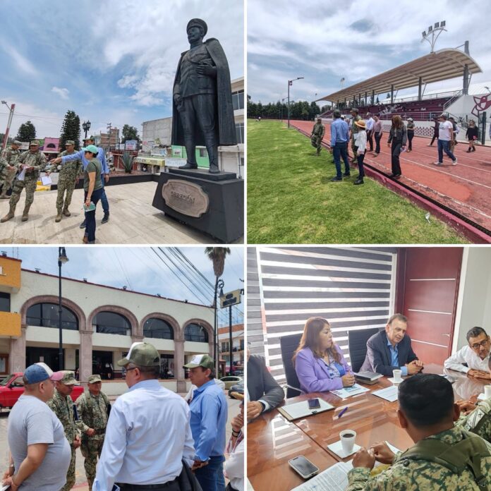 El Teniente Coronel Adán Landeros Espinosa realizó un recorrido por los puntos donde se desarrollarán las actividades conmemorativas y sostuvo una reunión de coordinación con el presidente municipal, Dr. Luis Domingo Zenteno Santaella, a fin de definir la logística del evento.