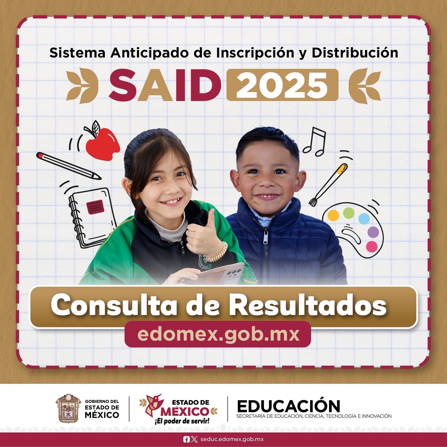 “¡Atención madres, padres y tutores! Ya puedes consultar los resultados del proceso de asignación SAID 2025”, publicó la Secretaría de Educación, Ciencia, Tecnología e Innovación mexiquense durante esta mañana de domingo en sus redes sociales.