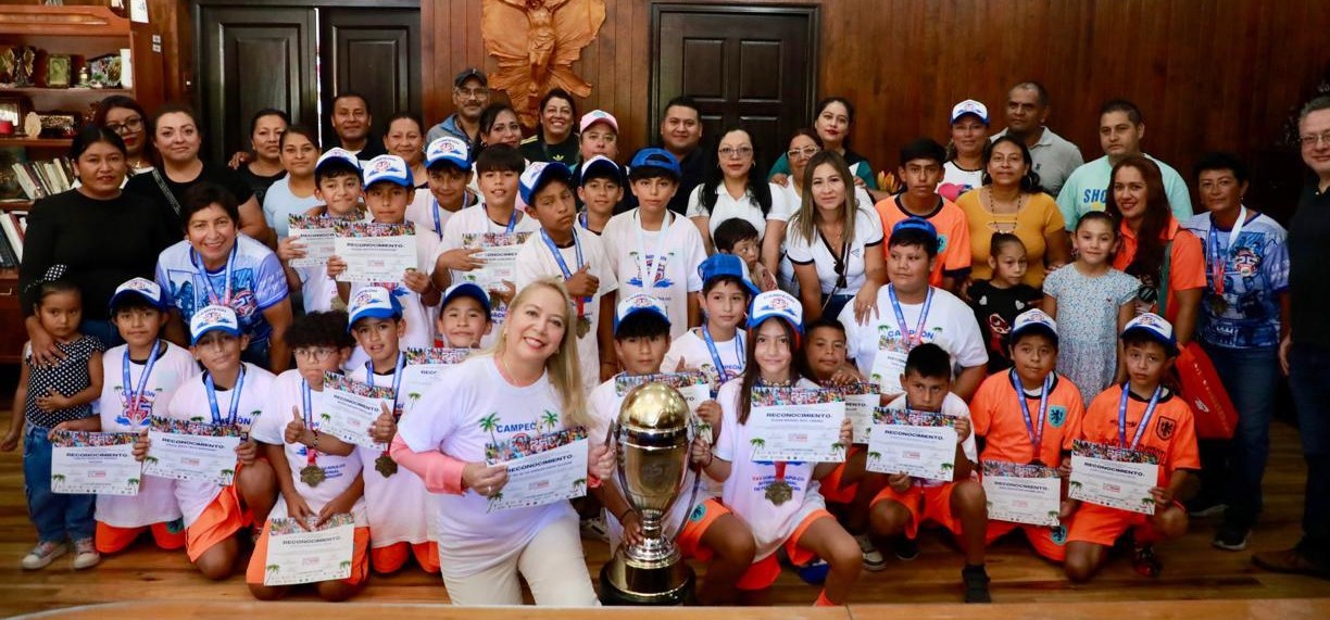 Las niñas y niños que conforman la selección de futbol de Tepotzotlán, y que ganaron el campeonato de la Copa Acapulco 2025 en la categoría 2014-2015, fueron reconocidos por la presidenta municipal, María de los Ángeles Zuppa Villegas, quien les expresó a los pequeños su emoción y orgullo por el triunfo que obtuvieron.