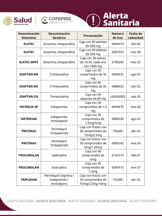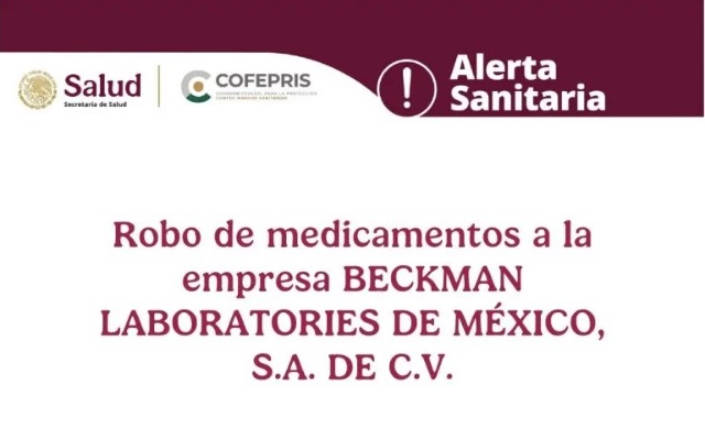 La Comisión Federal para la Protección contra Riesgos Sanitarios (COFEPRIS), lanzó una alerta donde advierte sobre el robo de medicamentos a Beckman Laboratories de México y cuya distribución y venta ilegal podrían representar un riesgo para la salud.