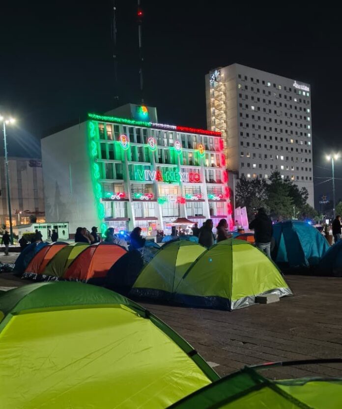 Desde muy temprana hora del lunes, al enterarse de la presencia de la gobernadora Delfina Gómez Álvarez en la reunión por la Mesa de la Paz en Cuautitlán, cerca de 300 comerciantes instalaron sendas de campaña y se manifestaron, más de 30 horas han pasado y los comerciantes mantienen cerca de 30 casas de campaña en la explanada cívica como manera de presión al gobierno local.