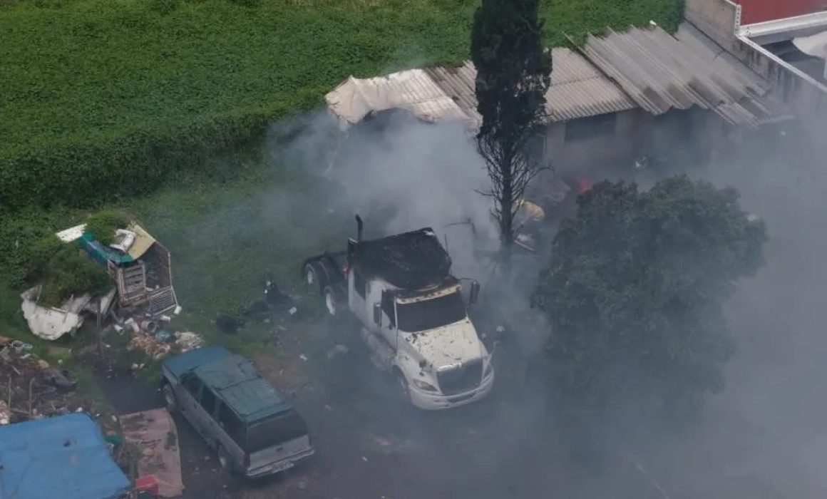 La cabina de un tractocamión fue consumida parcialmente luego de que una bodega que almacenaba pirotecnia, explotará en el municipio de Tultepec, Estado de México (EMX). Afortunadamente no hubo registro de lesionados.