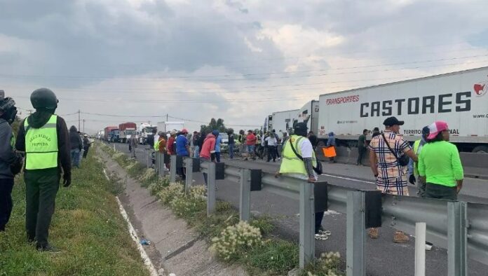 Al menos una decena de trabajadores bloquearon el paso en sentido al municipio de Ecatepec con piedras y palos para exigir la presencia de autoridades.