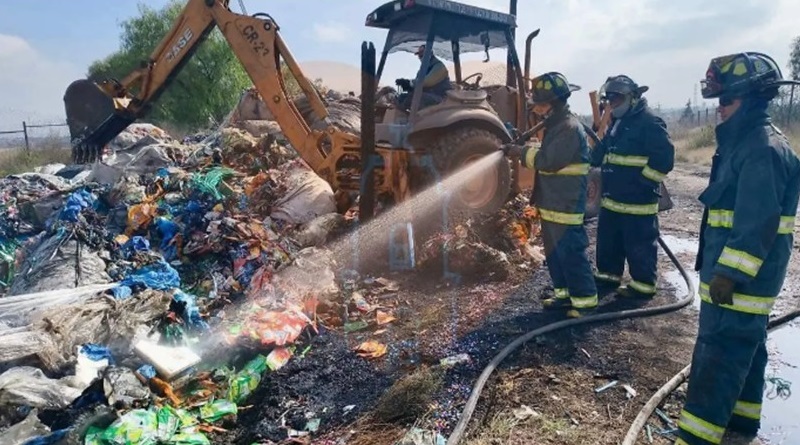 Bomberos de Tepotzotlán lograron controlar y sofocar un incendio registrado en la comunidad de Axotlán, dentro de un predio perteneciente a una recicladora de residuos.
