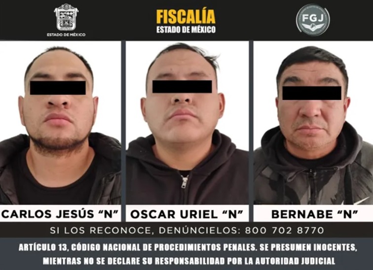 Una vez detenidos, Bernabé “N”, Carlos “N” y Óscar Uriel “N” fueron ingresados al Centro Penitenciario y de Reinserción Social de Tlalnepantla, a disposición de la Autoridad Judicial quien determinará su situación jurídica. No obstante, deben ser considerados inocentes en tanto no exista una sentencia condenatoria en su contra.