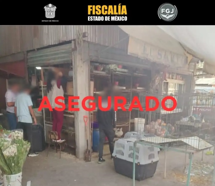 Elementos de la Fiscalía General de Justicia del Estado de México en coordinación con personal de la Comisión Estatal de Parques Naturales y de la Fauna (CEPANAF) rescataron 162 animales y localizaron 47 restos óseos de diversas especies en un local comercial ubicado en un mercado de este municipio.